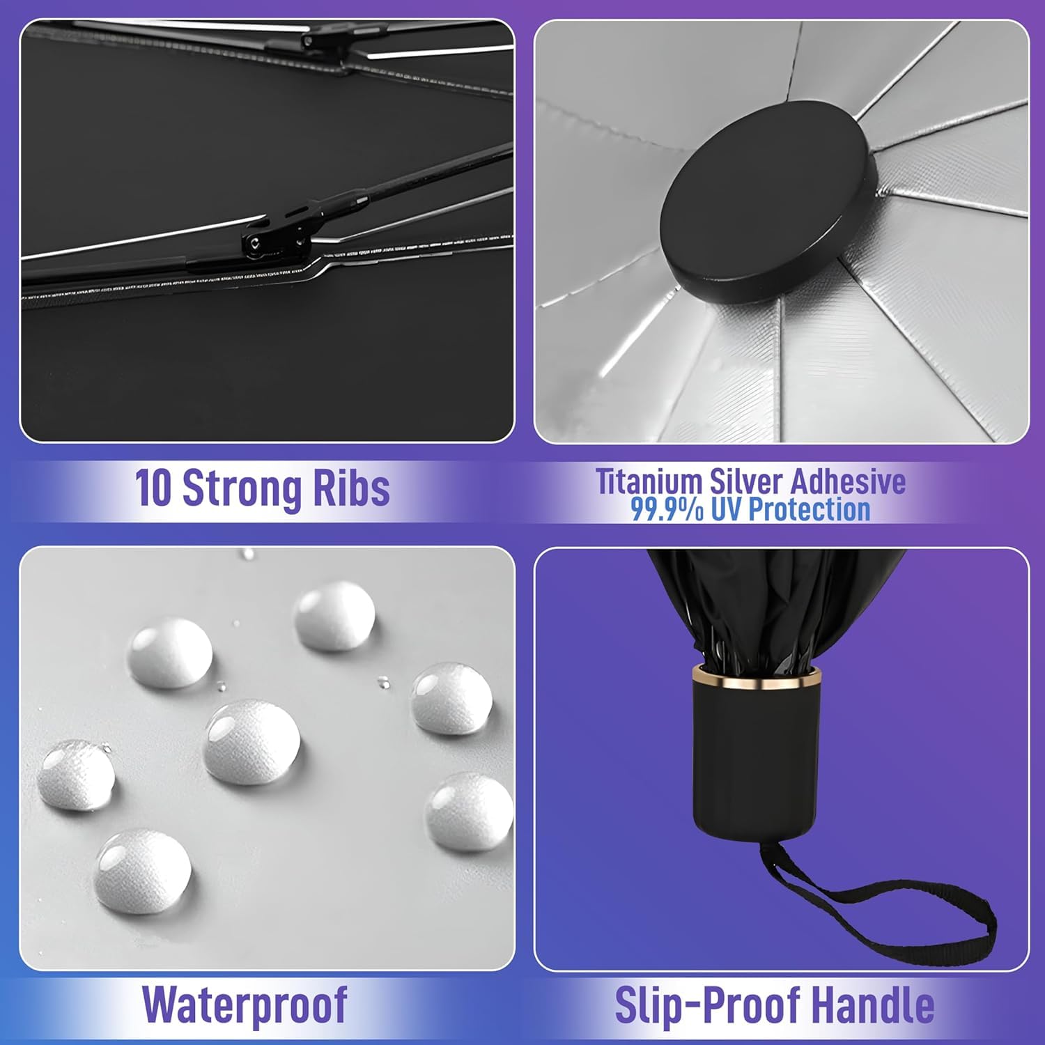 CARSUPPLYCO Sturdy All Weather Windshield Sun Shade Umbrella for Car – Foldable, UV Reflective, Easy Storage